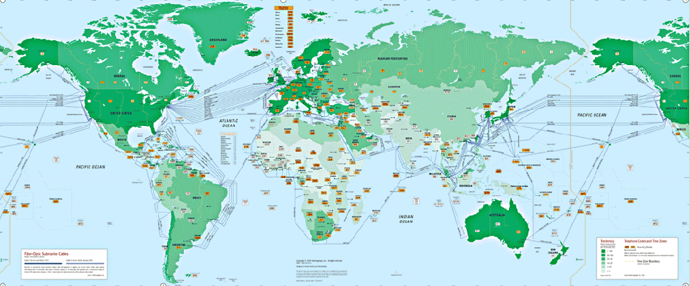 Den globale internet informationsmotorvej, submarine 2003. (Kilde: Telegeography).