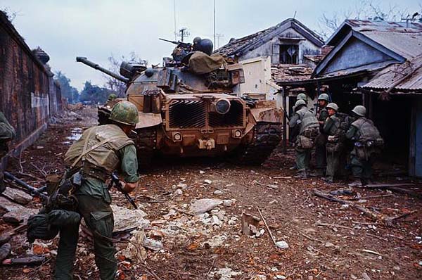 Patrulje med infanteri i dækning bag tank. Næste billede.
